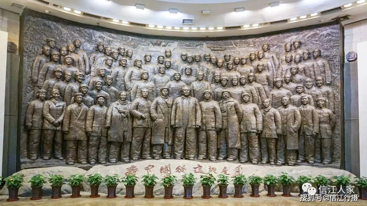 紀(jì)念館序廳是第七屆中央委員會77位中央委員和中央候補(bǔ)委員組成的大型銅雕,下方“新中國從這里走來”八個(gè)大字是展覽的主題。