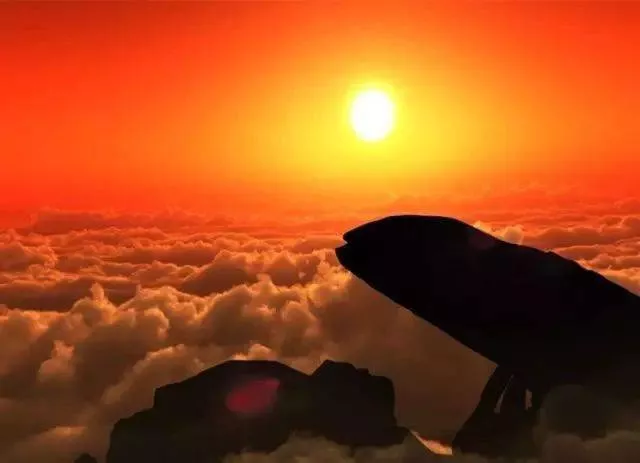 登臨絕頂攬勝境,彤彤旭日云中移。
