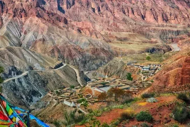 形成于1億2千萬年前的貴德丹霞地貌,當(dāng)中最著名的是阿什貢峽。阿什貢峽谷地處黃河北岸,兩側(cè)山巒夾峙,高聳入云,紅的似火紅,青的如黛。