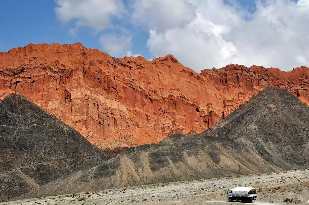 阿什貢七彩峰叢地貌多姿多彩,秀麗壯美,是因?yàn)檫@里面富含豐富的礦物質(zhì),所以顏色很多。
