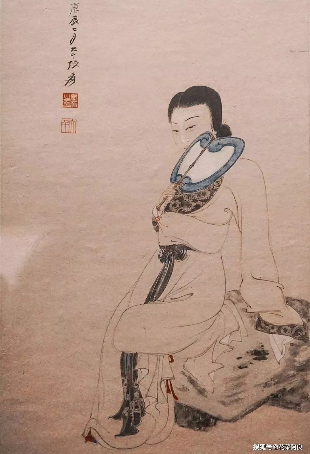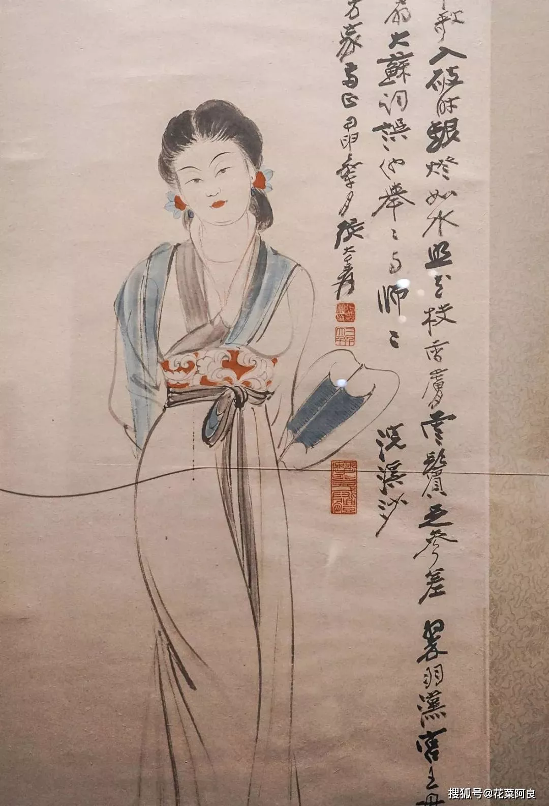 這次的敦煌之行,讓張大千無論是從歷史考究,還是繪畫技巧上都發(fā)生了重大的轉(zhuǎn)折改變。此后張大千的畫風(fēng)突變,筆下的仕女圖從清麗變成了嫵媚,在其畫中亦常出現(xiàn)敦煌壁畫中的各種元素,例如藻井圖案等。