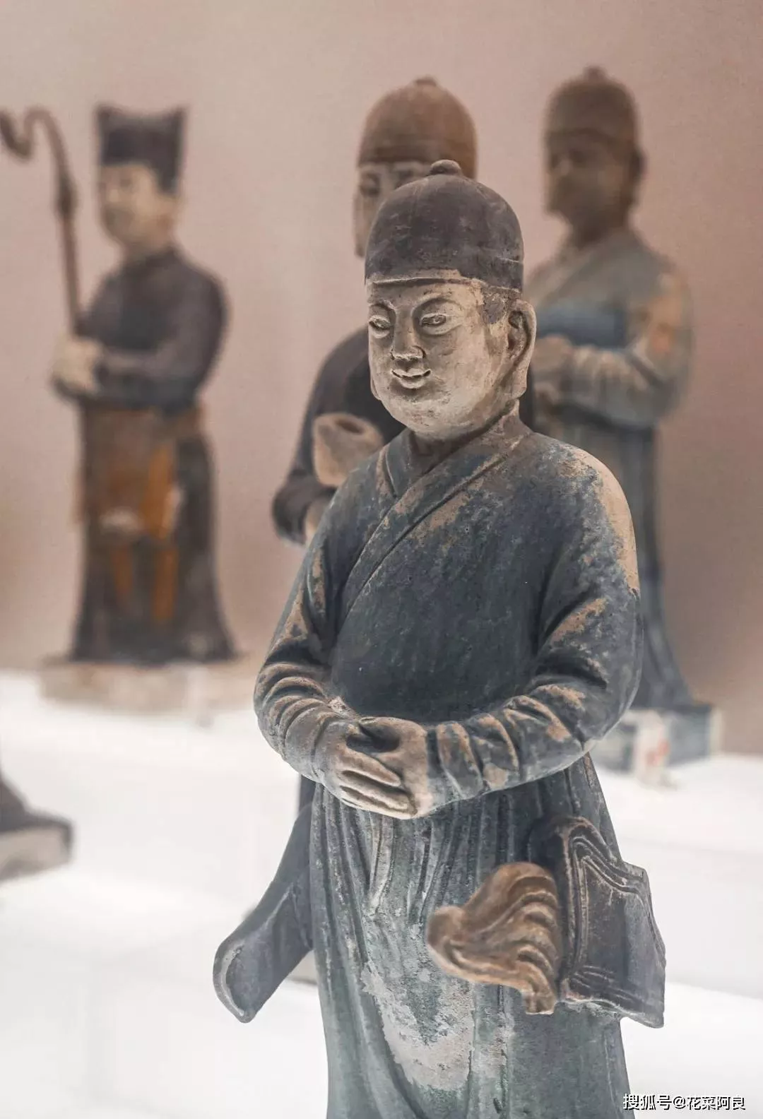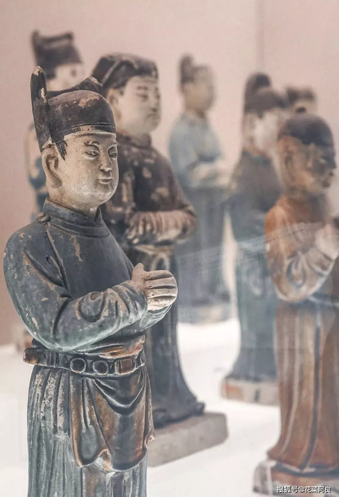 在其墓中總共出土了90多件青釉瓷器,出土了諸多彩俑。這些彩俑個個形象生動,栩栩如生,頗為一觀。