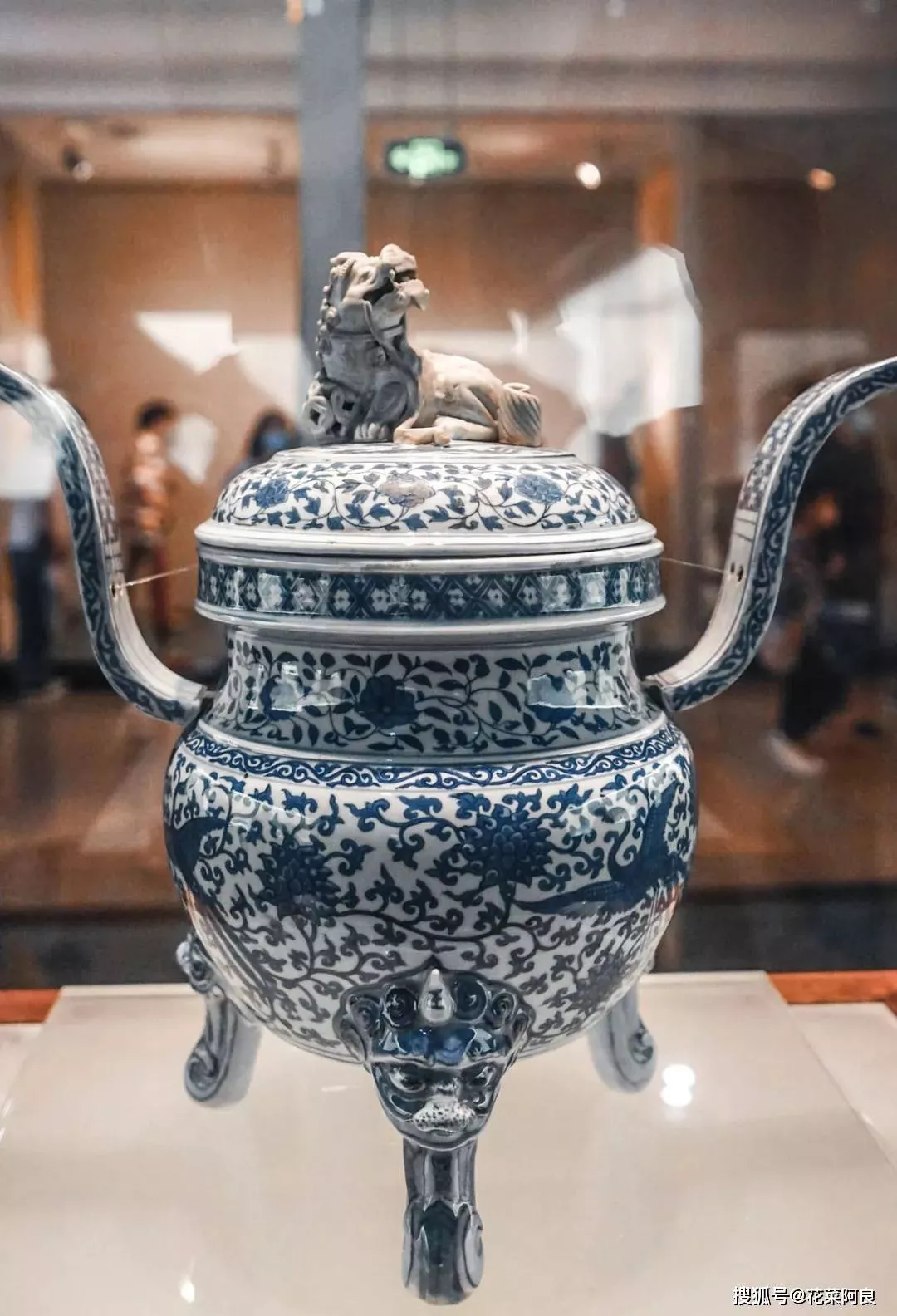 ▲ 圖為青花蓮鶴紋素獅紐熏爐