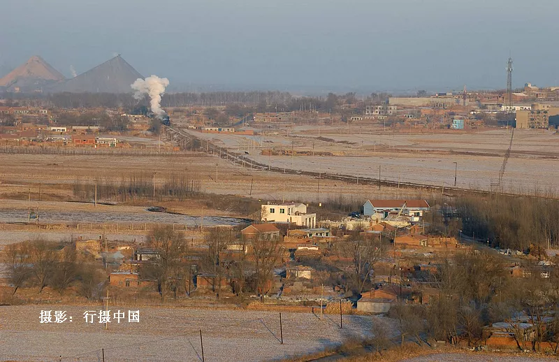 鏡頭前的這個(gè)村子叫做王仟村,類似這樣村莊在東北非常多,平原加上少許丘陵,就連風(fēng)景也都極為類似。蒸汽機(jī)車每天定時(shí)從鐵法市內(nèi)出發(fā),來接礦工上下班(有時(shí)候三班倒)
